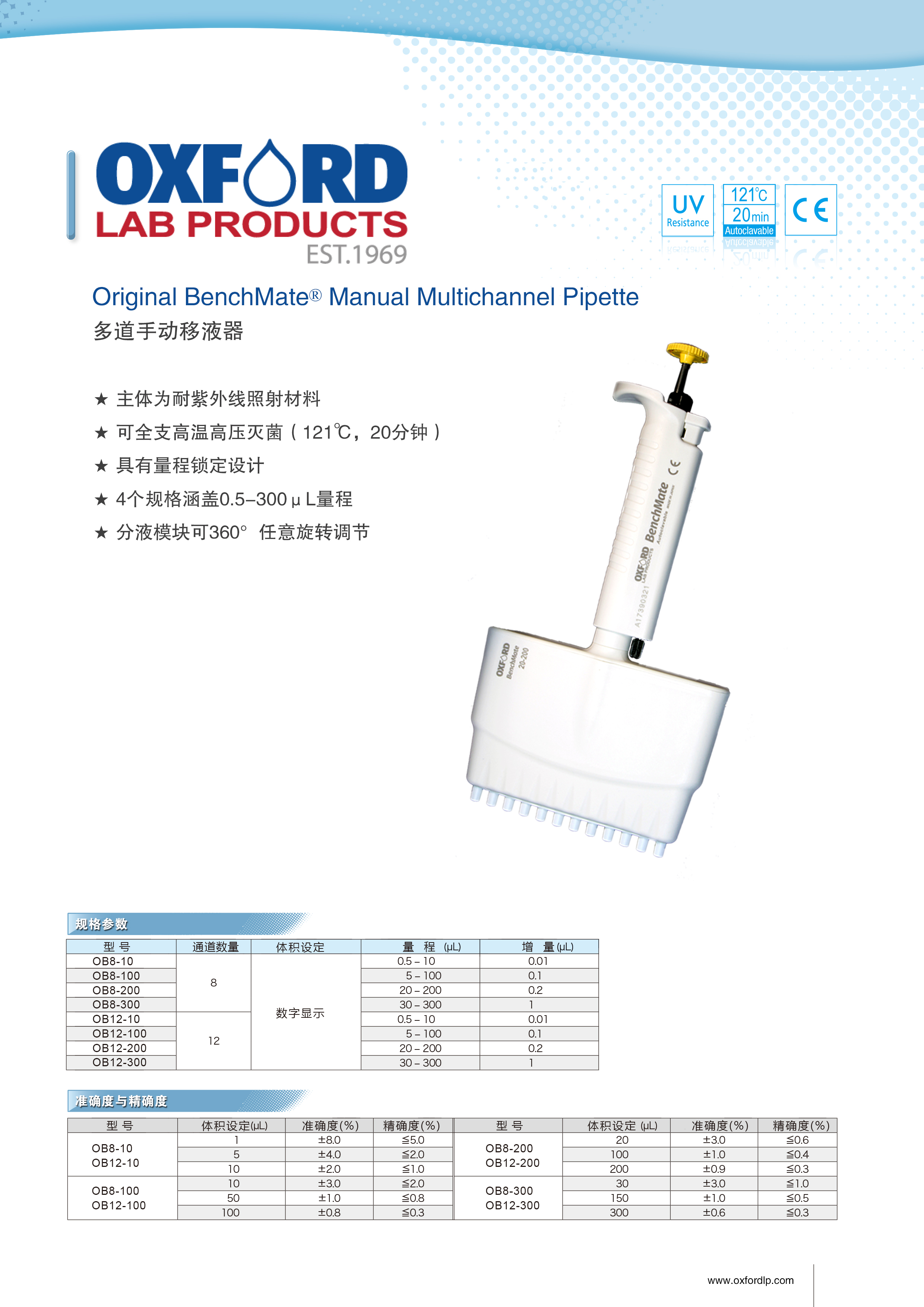 OB8-300OB12-300 | 30 - 300 (μL) | 30 | ±3.0 | ≦1.0 |